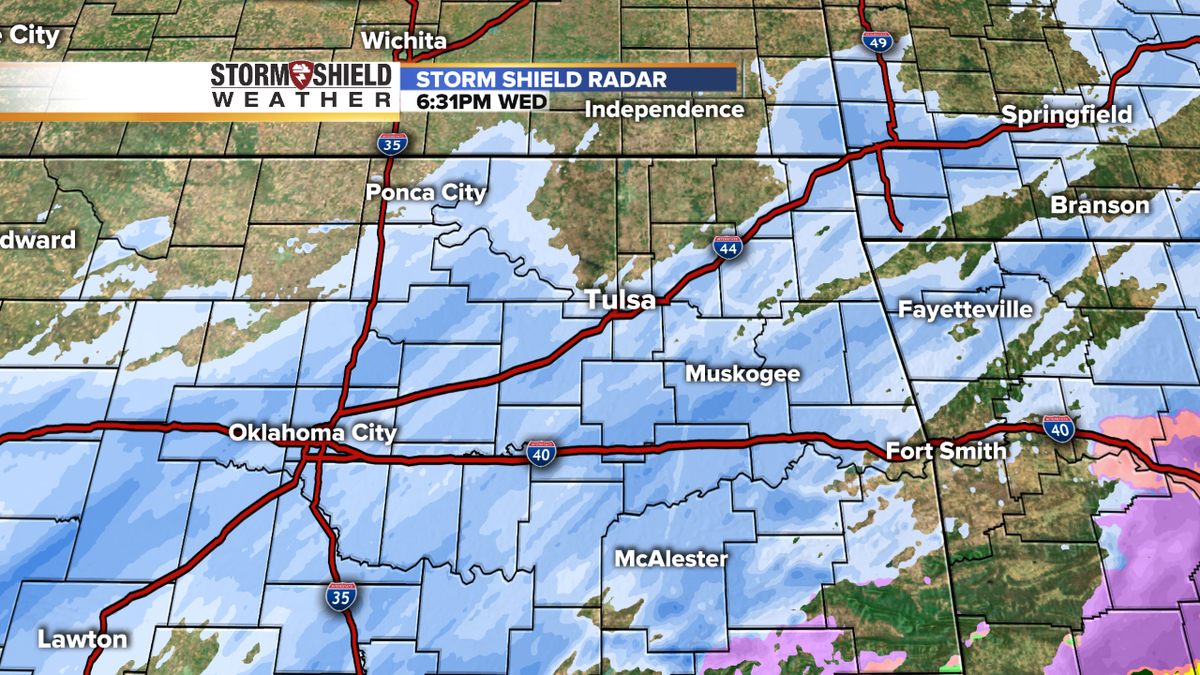 Storm Shield Radar, 6:30pm Wed. March 4th. Snow will be possible through 10pm. 1 to 2 inches most common.