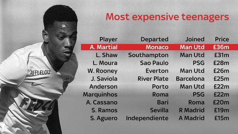 Anthony Martial is the most expensive teen in history. Who else makes the top 10?